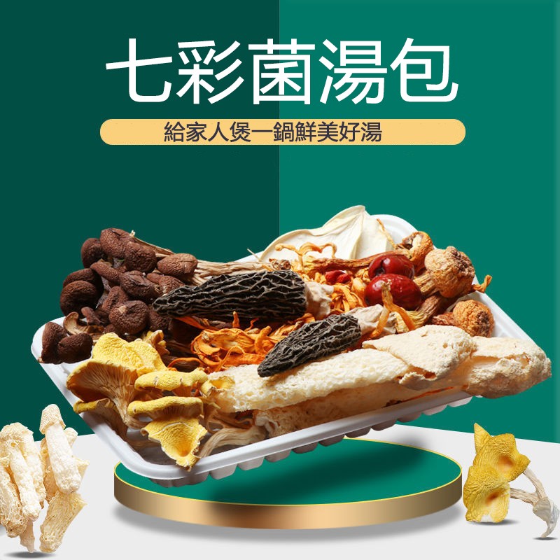 半小時前七彩菌湯包,鮮香濃郁,菌體肥嫩,當季乾貨,自然曬乾無硫熏,煲湯首選! - 現貨速發!密封包裝!乾淨衛生! [秋冬 季節必備的七彩野生菌湯包x5=NT$988]