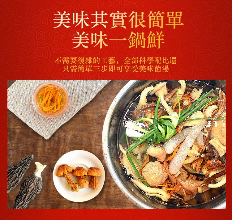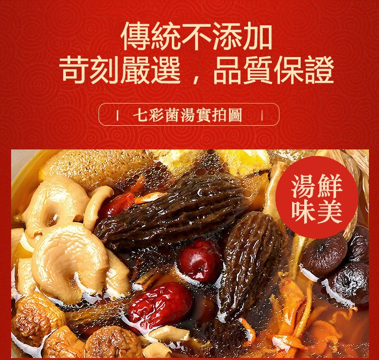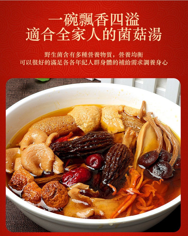 11分鐘前自然無硫熏,無添加食用更安心! [秋冬 季節必備的七彩野生菌湯包x10=NT$1150 ]